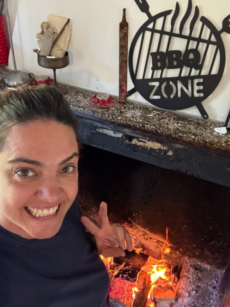 Qui una diapositiva di me, 50° all’ombra, braci in preparazione per la grigliata e la felicità dipinta sul mio volto.